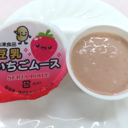 乳は使わずに国産大豆100%の豆乳といちご濃縮果汁で甘酸っぱい味わいのおいしいムースに仕上げました。ビタミンCを強化しました。