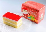 ふんわり柔らかなスポンジとホイップクリームをそれぞれ2層にすることで,しっとりとしたケーキに仕上げました。天面には,いちごのピューレを使用したいちごソースをトッピングしております。小箱にはクリスマスをイメージしたデザインを採用しております。