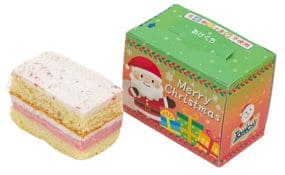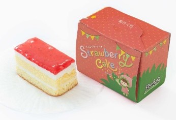 乳・卵・小麦を使用せずに仕上げたいちごケーキです。米粉と豆乳で作ったスポンジに,2種類のクリーム(イチゴミルクをイメージした濃厚なガナッシュ風クリームといちごジャムを練り込んだクリーム)を重ね合わせたケーキです。いちごの甘さと酸味が楽しめるケーキです。小箱にはクリスマスをイメージしたデザインを採用しており,上面には乳・卵・小麦が不使用である事をわかりやすく記載しております。