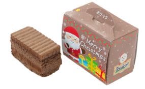 ふんわり柔らかなココアスポンジに濃厚で口どけの良いチョコクリームを重ね、しっとりとしたケーキに仕上げました。小箱にはクリスマスをイメージしたデザインを採用しています。