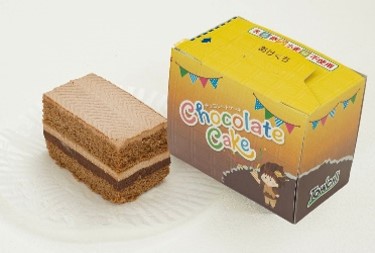 乳・卵・小麦を使用せずに仕上げたチョコケーキです。米粉と豆乳とチョコを使用したスポンジに2種類のクリーム(生チョコをイメージした濃厚なガナッシュ風クリームと甘くなめらかなチョコクリーム)を重ね合わせたケーキです。小箱にはお祝いをイメージしたデザインを採用しています。上面には乳・卵・小麦が不使用であることを分かりやすく記載してあります。※小箱、敷紙、スプーン:紙