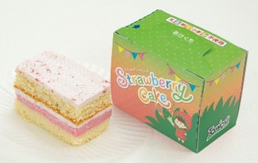 乳・卵・小麦を使用せずに仕上げたいちごケーキです。米粉と豆乳で作ったスポンジに、2種類のクリーム(イチゴミルクをイメージした濃厚なガナッシュ風クリームといちごジャムとフリーズドライいちごを練り込んだクリーム)を重ね合わせたケーキです。いちごの甘さと酸味料が楽しめるケーキです。小箱には、お祝いをイメージしたデザインが採用してあります。上面には乳・卵・小麦が不使用であることを分かりやすく記載してあります。※小箱、敷紙、スプーン:紙