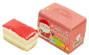 ふんわり柔らかなスポンジとホイップクリームをそれぞれ2層にすることで、しっとりとしたケーキに仕上げました。天面には、いちごのピューレを使用したいちごソースをトッピングしております。小箱にはクリスマスをイメージしたデザインを採用しています。